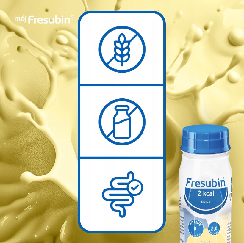Kompletna dieta wysokoenergetyczna (2,0 kcal/ml), bogata w białko (20 en%), o wysokiej zawartości witaminy D, przeznaczona do żywienia drogą doustną. Nie zawiera błonnika, klinicznie wolna od laktozy, bezglutenowa.